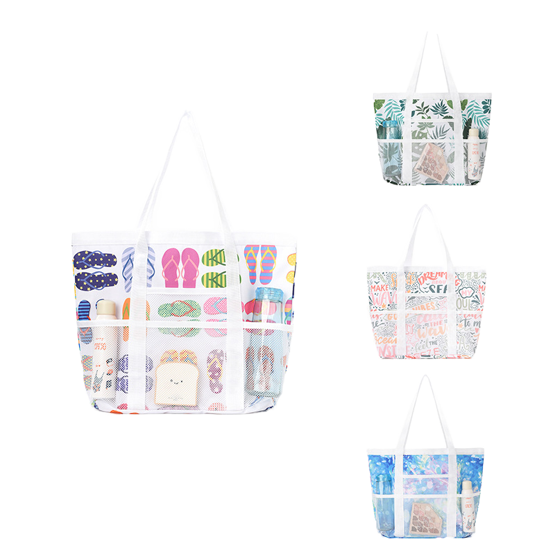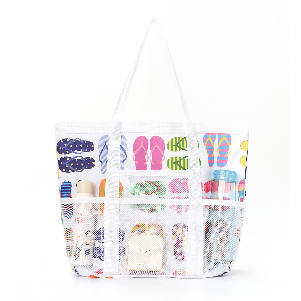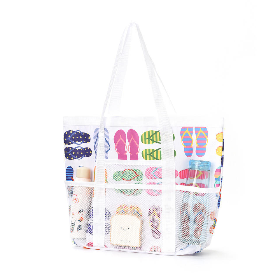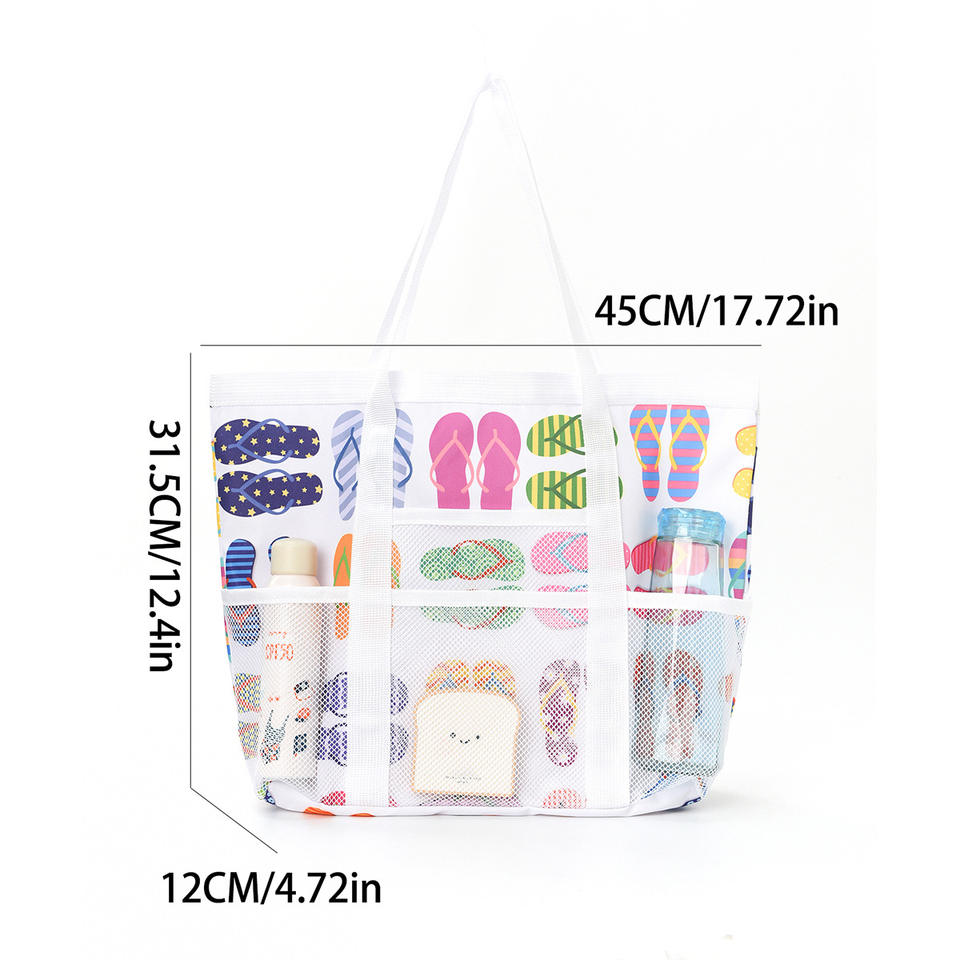 Bolsa de playa multibolsillo de gran capacidad, bolsa de almacenamiento hueca de malla de nailon con cierre abierto para Amazon, organizador de baño transfronterizo