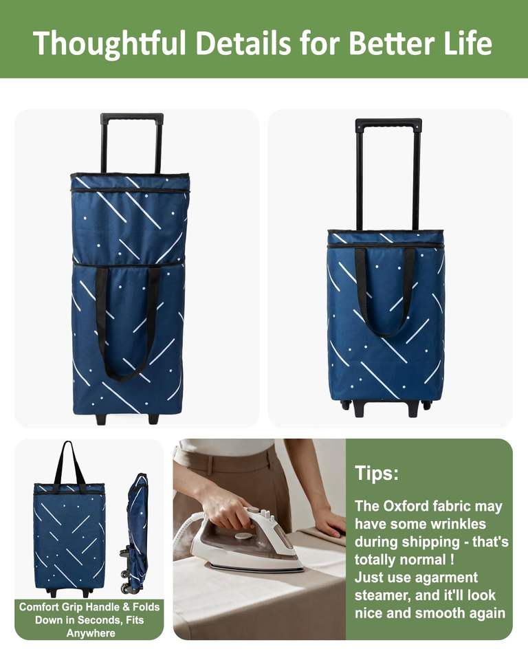 Bolsa de Compras Multifuncional Reutilizable de Gran Capacidad con Ruedas, Carrito Plegable con Cierre y Diseño Enrollable