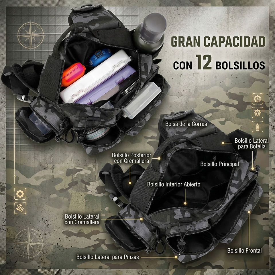 Bolsa de Pesca Multifuncional de Gran Capacidad, Impermeable, con Diseño Práctico para Llevar al Hombro o a la Cintura