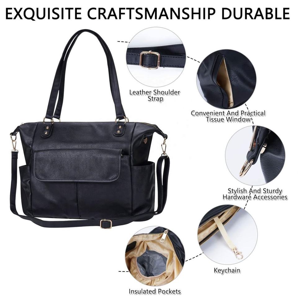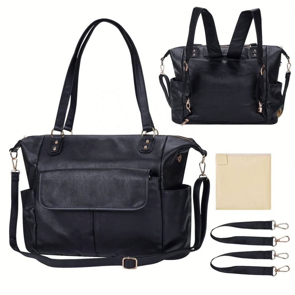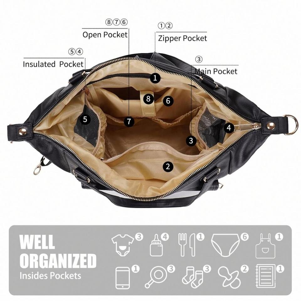 Organizador de pañales de gran capacidad, bolso de cuero vegano de imitación para pañales de bebé, mochila para madre, bolso de mano con bolsillos aislados, cambiador