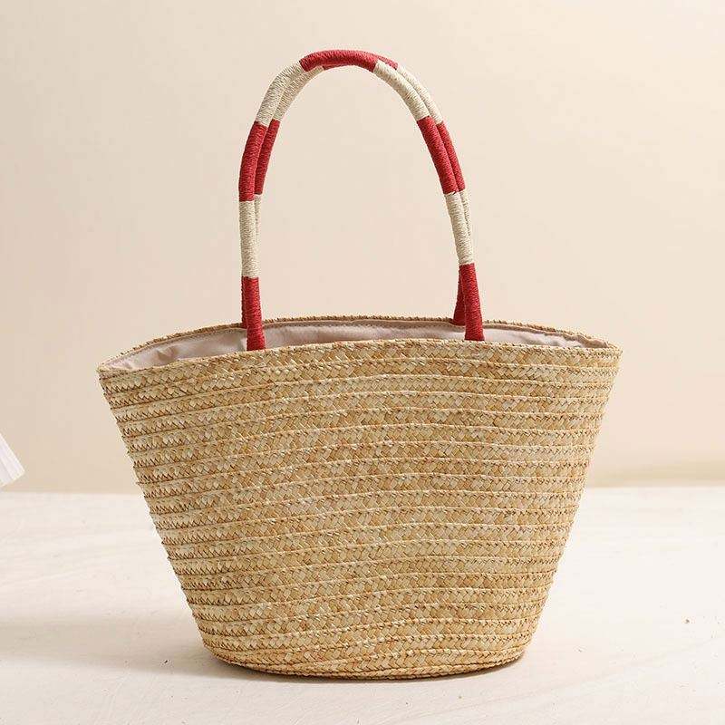 Bolso de Hombro de Paja Tejida con Bordado de Cerezas, Gran Capacidad, Nuevo Estilo, para Vacaciones en la Playa
