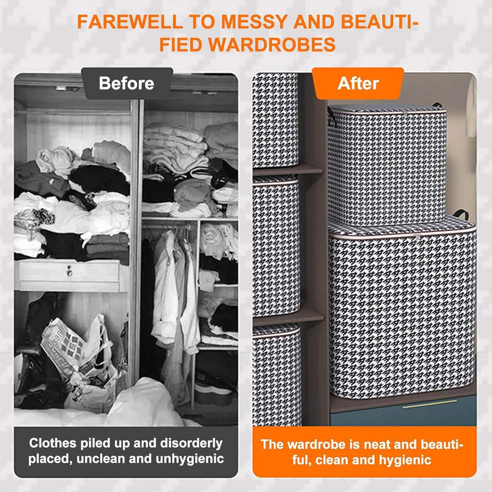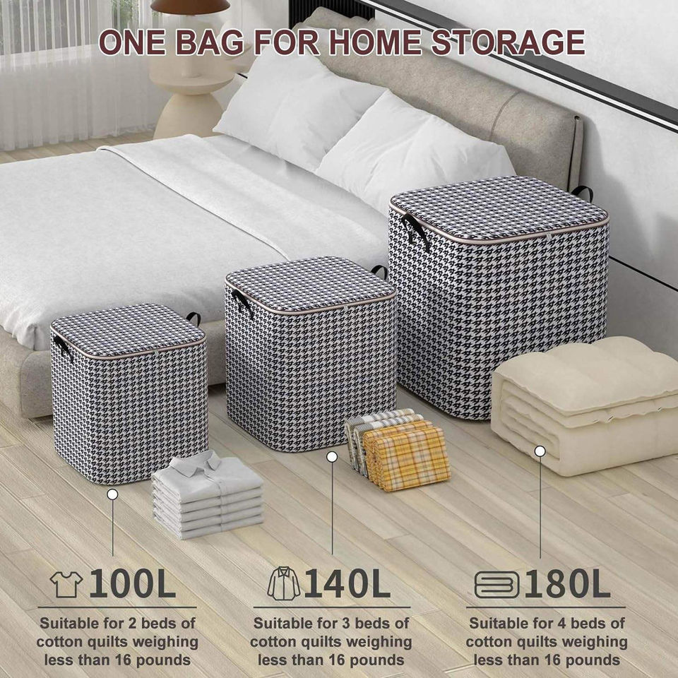 Large Capacity Pant Organize Storage with Durable Handles Thick Fabric Storage Bag Bedroom Quilt Clothes Box for Blanket