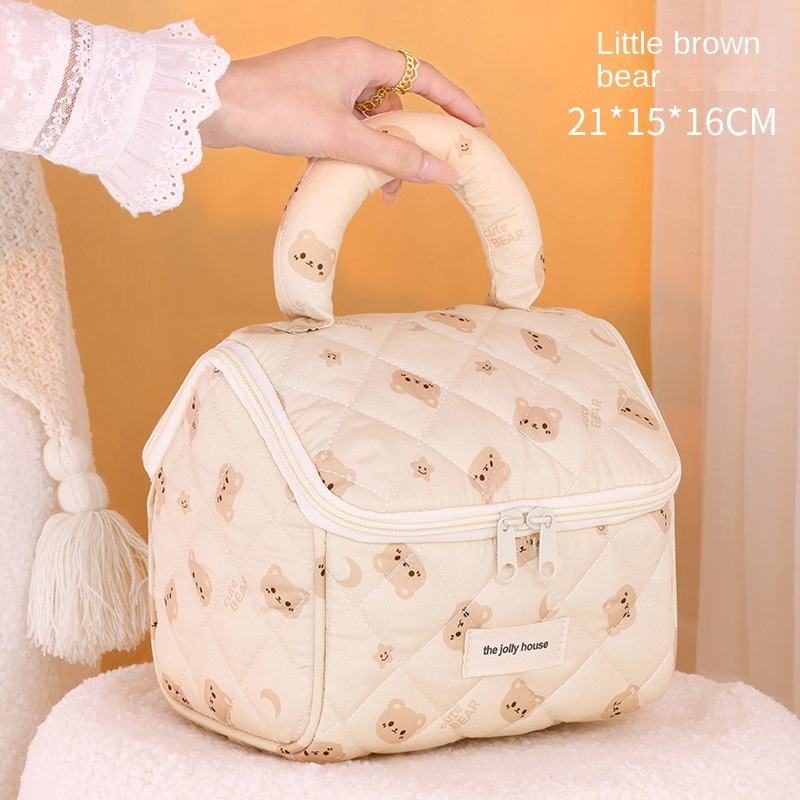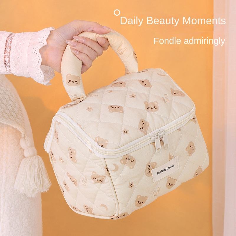 Bolsa de almacenamiento de cosméticos portátil de gran capacidad, bolsa de lavado de poliéster de moda con oso bonito, cierre de cremallera, bolsa de maquillaje amigable para viajes