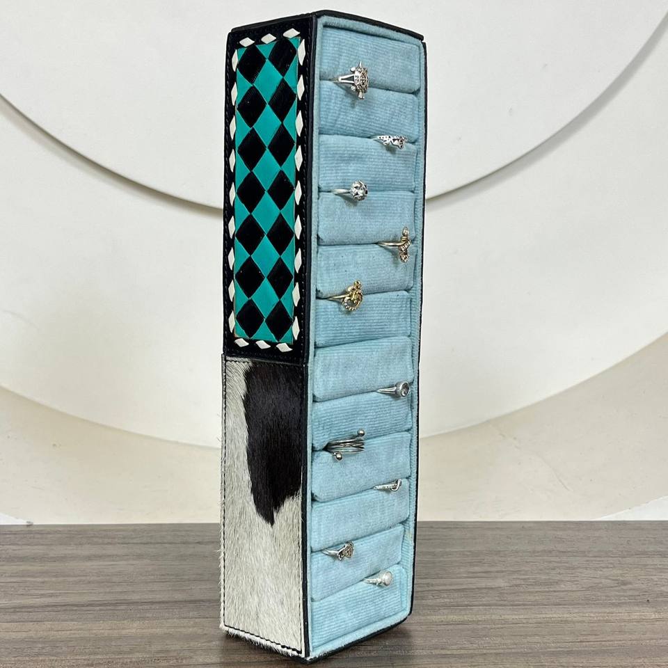 Caja de presentación de anillo de cuero de vaca mecanizada a manoNombre del producto