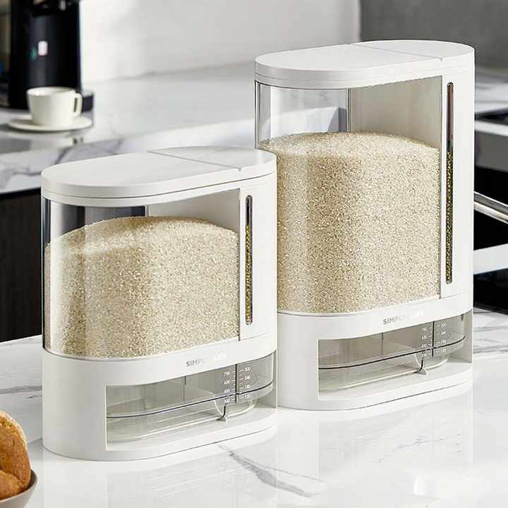 Cubo de almacenamiento de arroz de gran capacidad con partición de tapa a prueba de insectos, dispensador de alimentos de medición de flujo automático, contenedores de almacenamiento de granos