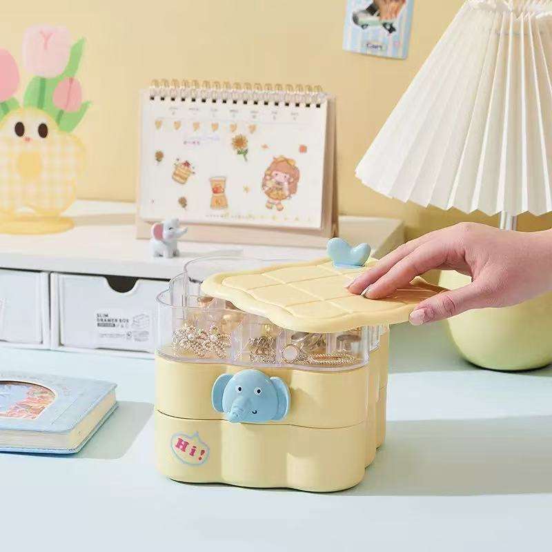 Joyero de plástico giratorio de gran capacidad para niñas, bonito organizador de almacenamiento para pendientes, anillos, collares