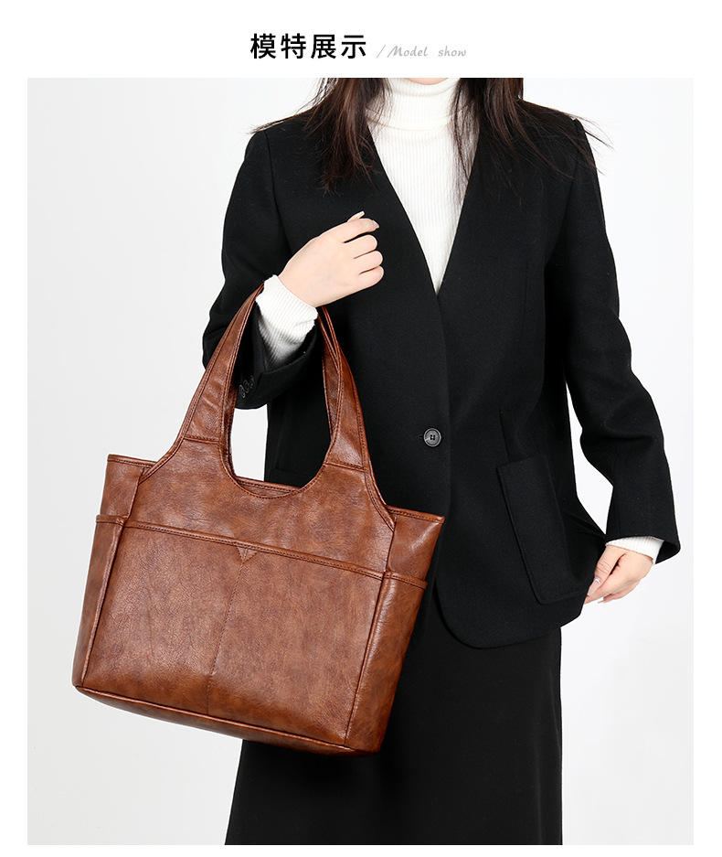 Bolso Tote de Gran Capacidad en Color Sólido, de Cuero PU, Portátil, para Mujer, Bolso de Hombro Tipo Cubo con Asa Superior de Cuero PU
