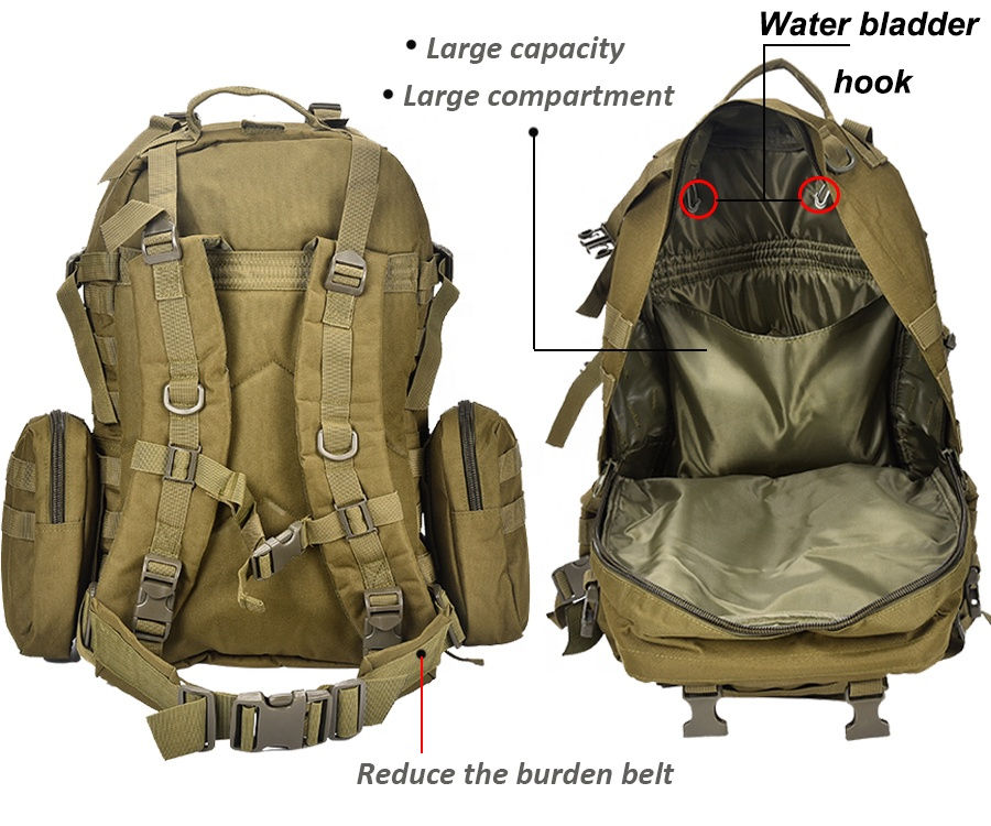 Mochila Táctica de Gran Capacidad con Patrón de Asalto, Mochila EDC Molle para Exteriores, Senderismo, Camping, Caza, Deportes