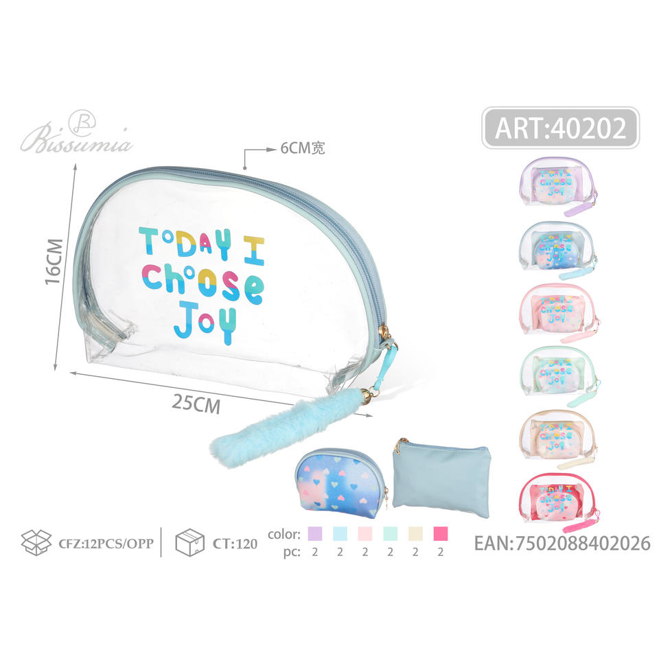 Estuche cosmético de tres piezas de gran capacidad Tira de lana transparente Exterior 25*16*6 Bolsa plana 18*12 Semicírculo pequeño 14*10*4 Características