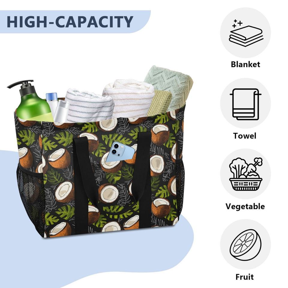 Bolsa de Compras de Gran Capacidad con Asa, Estampado de Hojas Tropicales de Guepardo, Bolsa de Poliéster Suave Personalizada para la Compra en la Playa