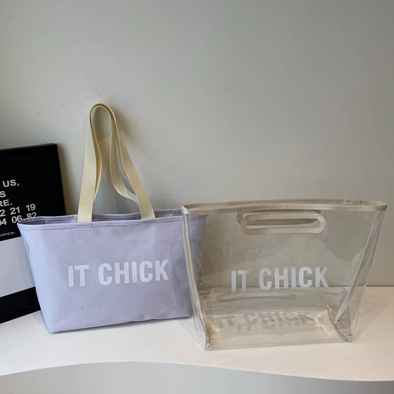 Bolso de mano transparente de PVC de gelatina transparente de gran capacidad, impermeable, informal, estilo coreano, estilo coreano, bolso de género neutro