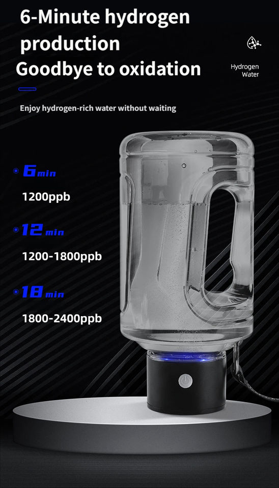 Generador de Agua Rica en Hidrógeno Molecular Portátil de Plástico con USB/Batería, Botella Deportiva con Filtro, para Uso Doméstico y al Aire Libre