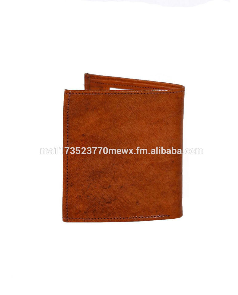 Cartera de gran capacidad con bloqueo de monedas, tarjetero de cuero de cabra, totalmente hecha a mano, color natural