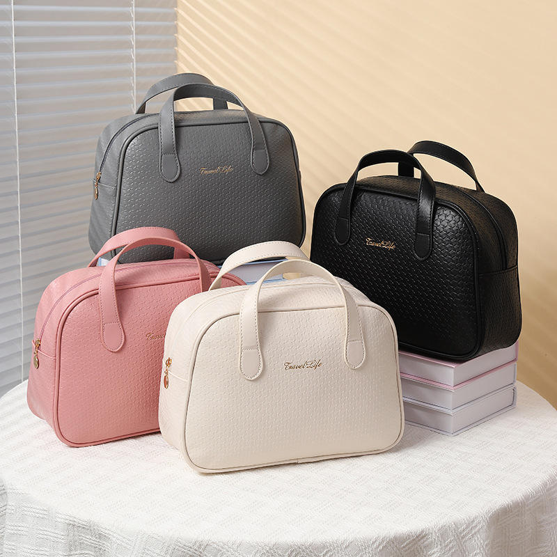 Bolsa de maquillaje de PU resistente al agua de gran capacidad, neceser de viaje con cremallera estilo caramelo para mujer, bolsa de maleta cosmética multifuncional