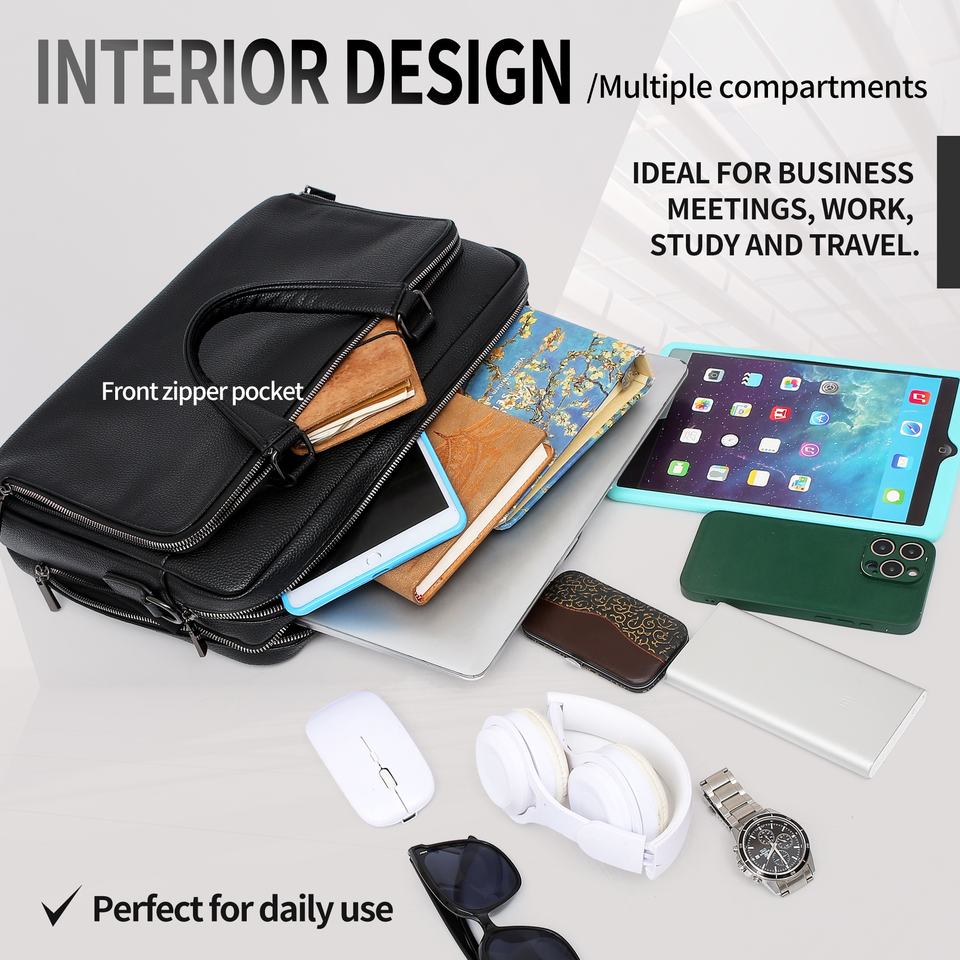 Maletín Profesional de Gran Capacidad Resistente al Desgaste con Bolsillos Organizadores, Bolsa de Mensajero de Cuero PU para Laptop de 15 Pulgadas