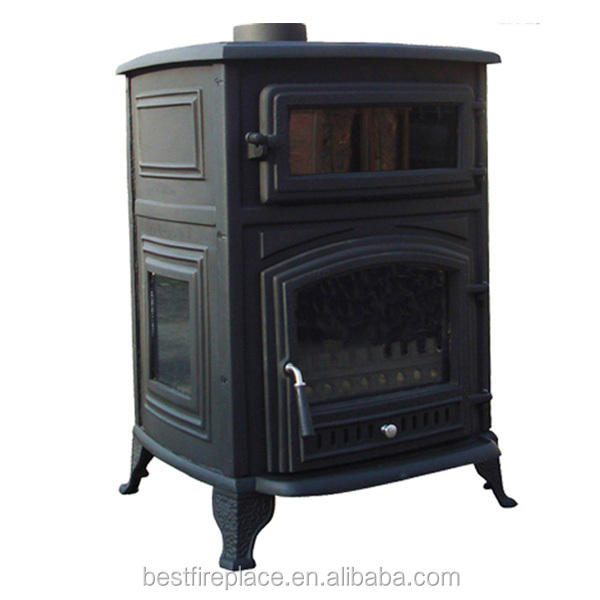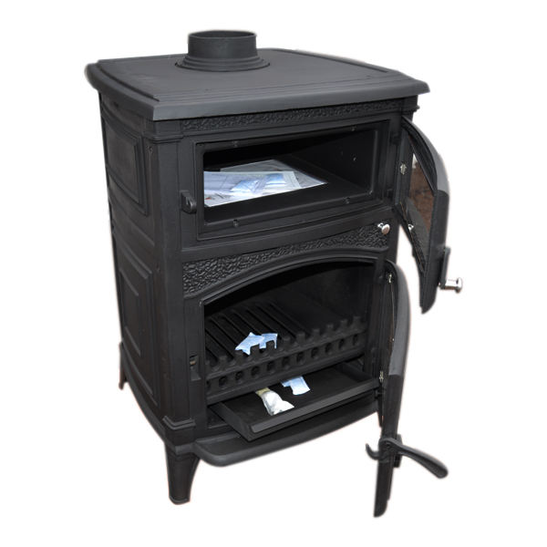 Hornillo grande de hierro fundido con horno para pizza, estufa para quemar madera