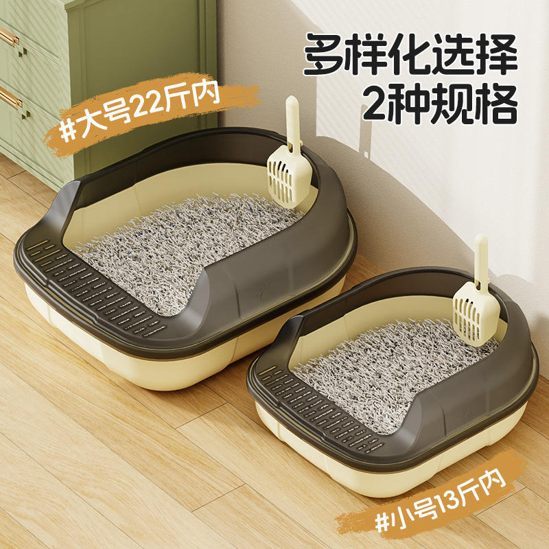 Caja de arena para gatos grande, ovalada, de gran capacidad, con pala, para gatos, material PP grueso