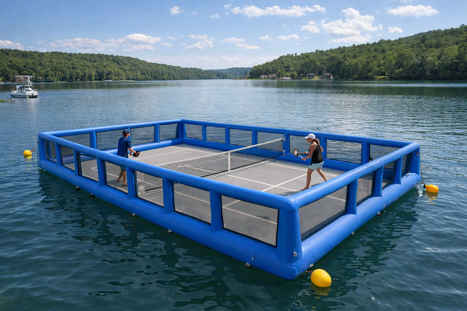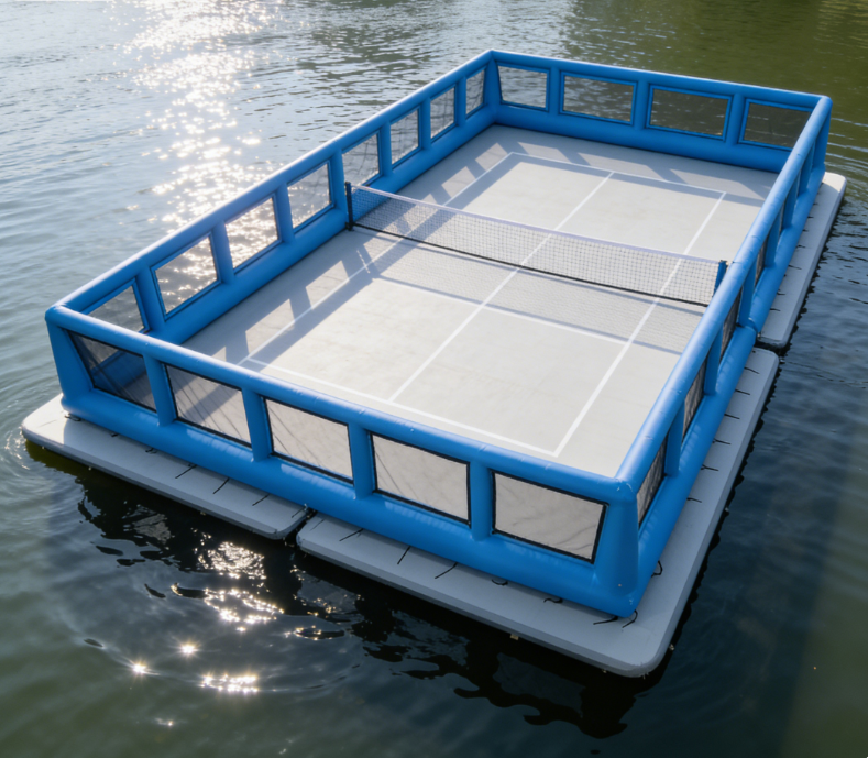 Cancha de Pickleball Flotante Inflable Comercial, Plataforma Flotante para Deportes Acuáticos, para Lago y Piscina