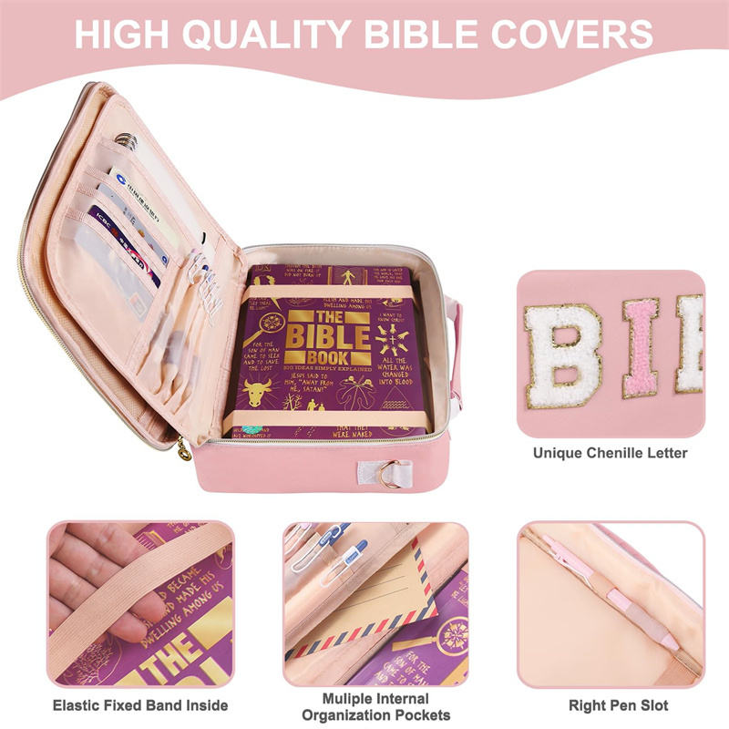 Estuche para Biblia Grande de Chenilla con Correa para el Hombro, Funda Protectora para Biblia para Mujer, Bolso de Mano para Biblia de Iglesia para Mujer