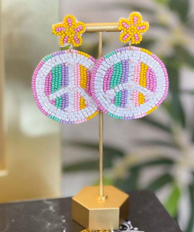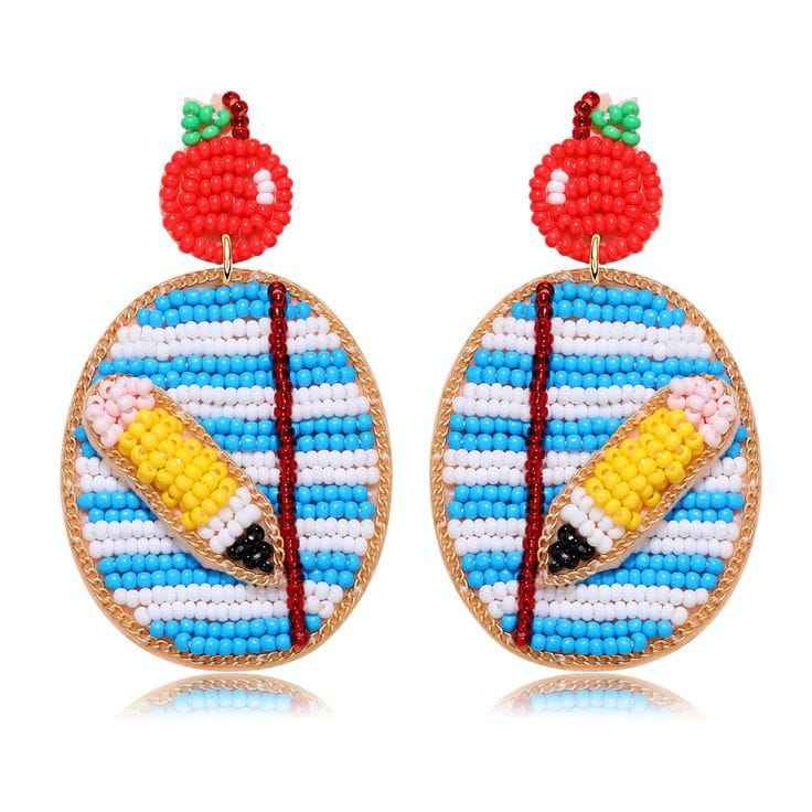 Pendientes bordados a mano coloridos grandes