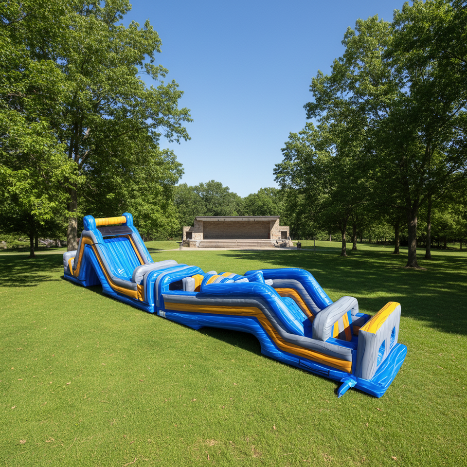 Pista de Obstáculos Inflable de PVC Grande, Estilo Competitivo, Azul y Amarillo, para Actividades de Team Building al Aire Libre, Diversión y Entretenimiento