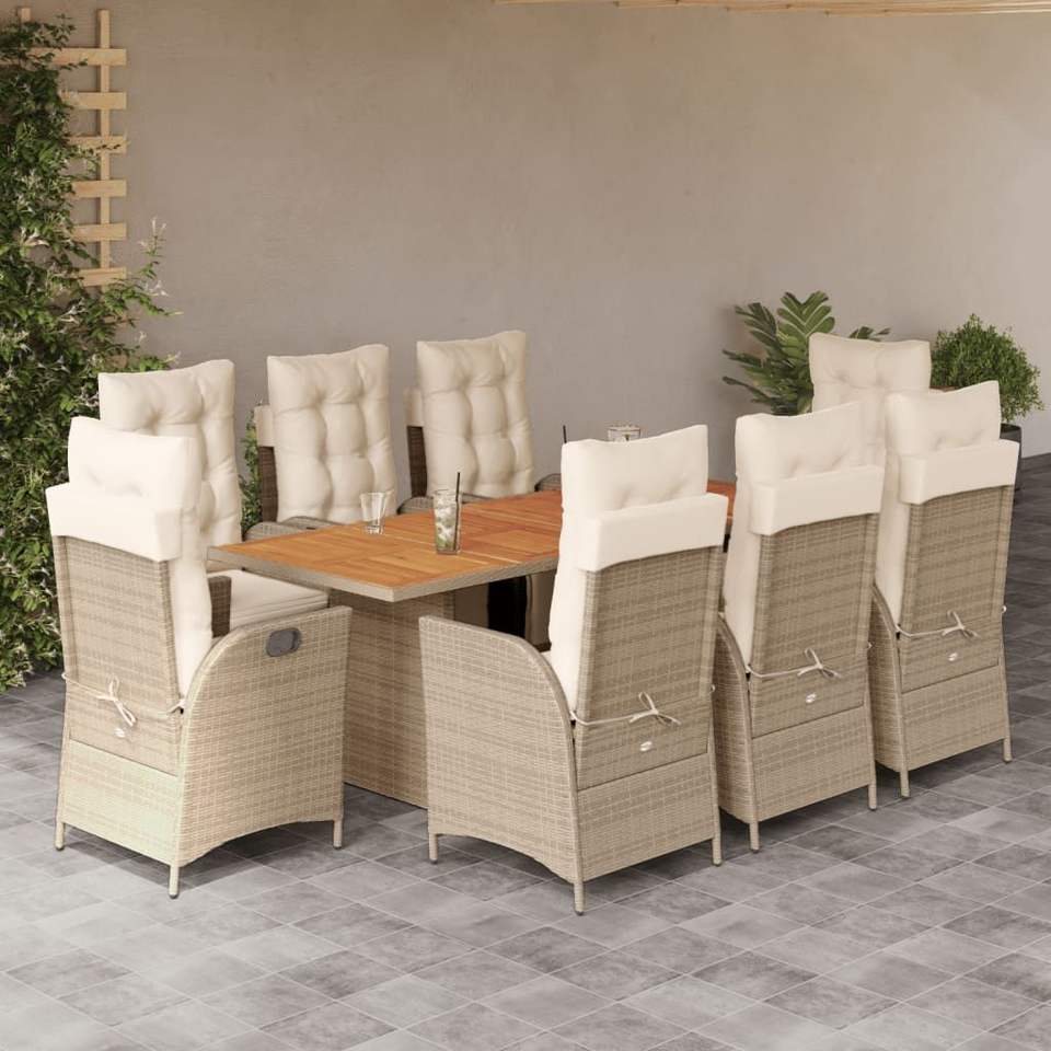 Conjunto de Comedor Grande para Jardín de Ratán PE Color Crema Blanco, Colección Beige