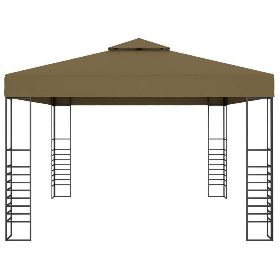 Gazebo Grande con Incrustaciones Decorativas, Poliéster Color Taupe, con Toldo y Pérgola de Acero