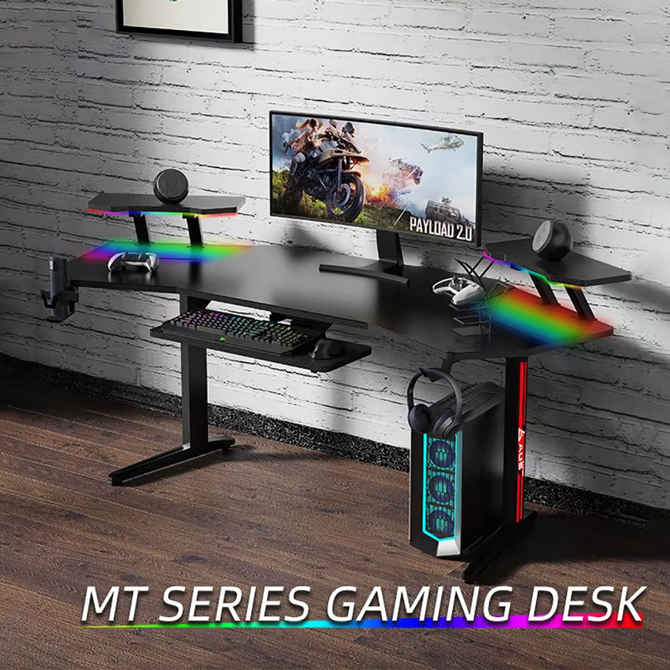 Escritorio gaming grande de sobremesa con luz LED RGB, mesa para e-sports PC, escritorio gamer negro de esquina