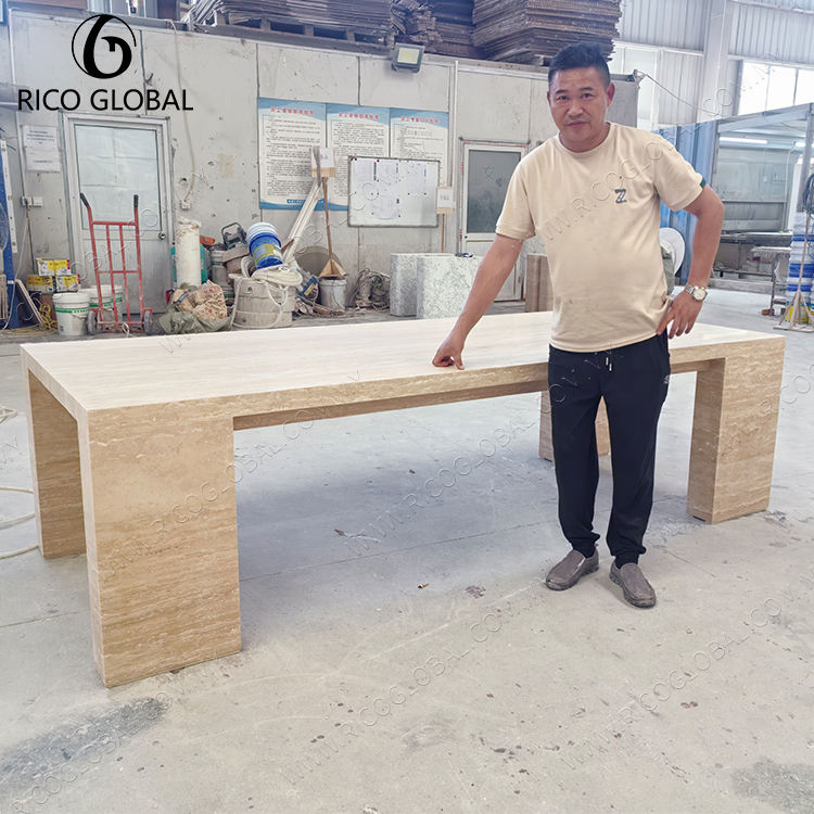 Gran Mesa de Comedor para 8 Beige Travertino Diseño Rectangular Delgado 3mm 5mm de Espesor