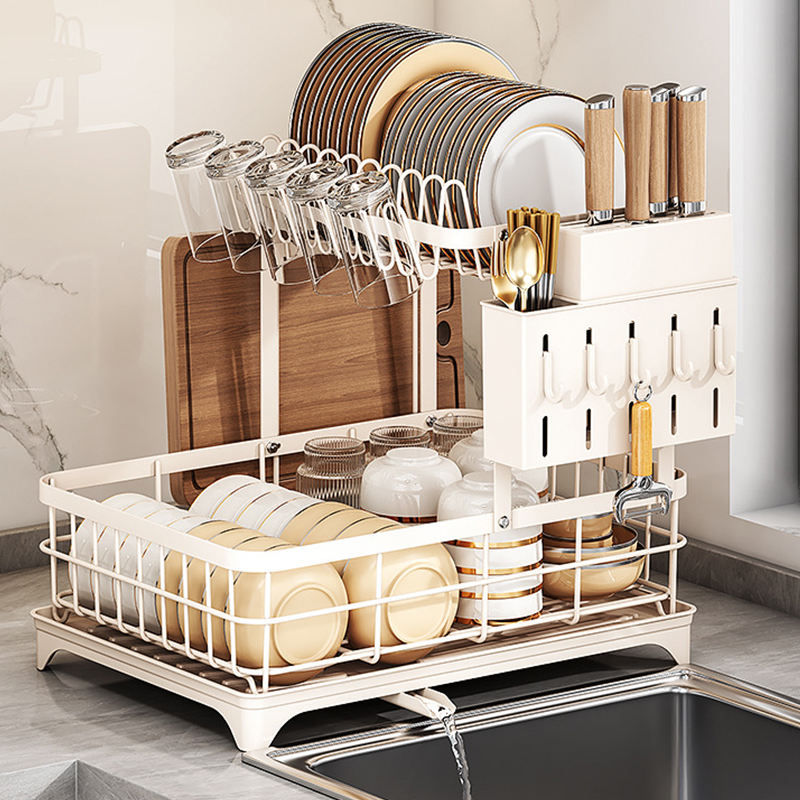 Escurreplatos de cocina de 2 niveles, escurridor de platos y tazas