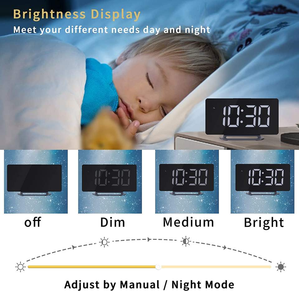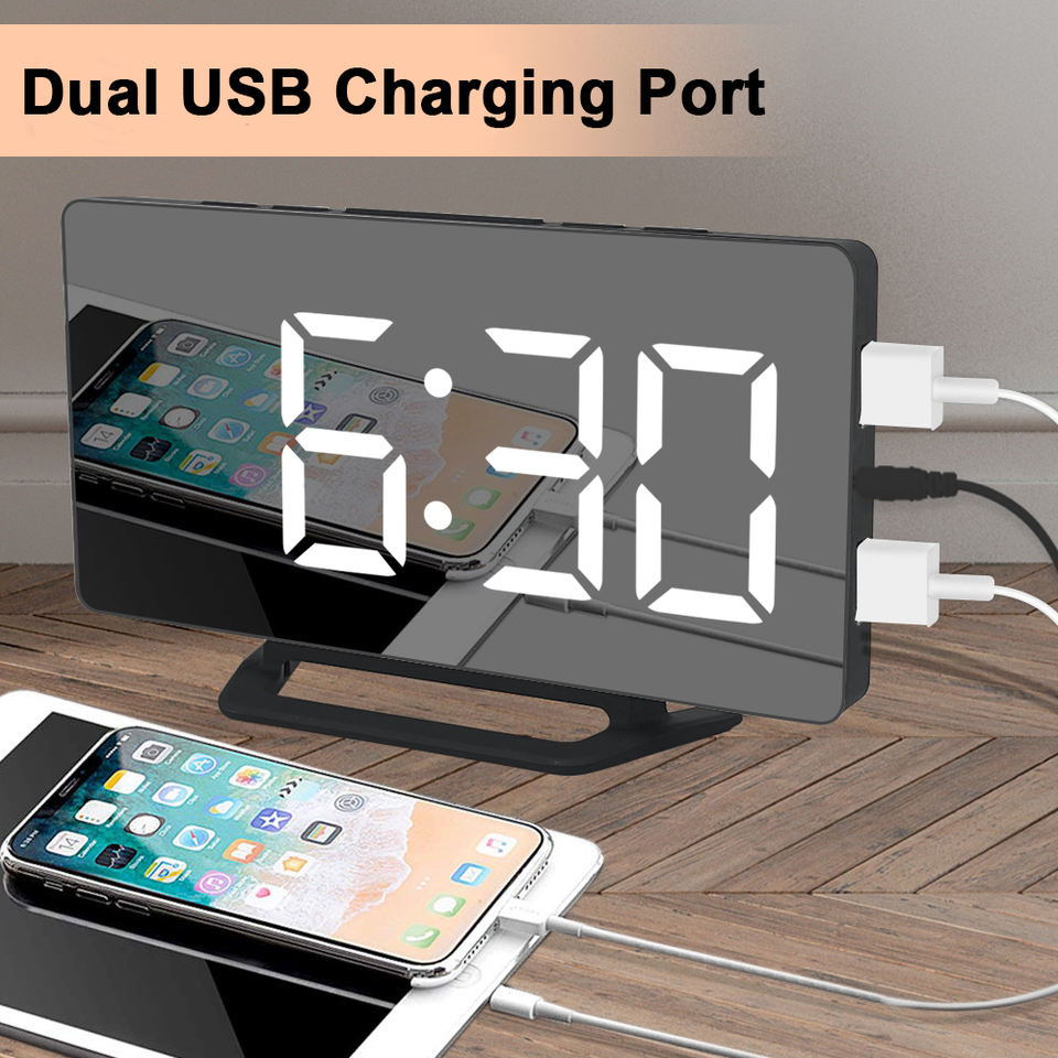 Reloj despertador Digital con pantalla grande para dormitorio, dispositivo con doble puerto de carga USB, de escritorio estético de 6,5 pulgadas