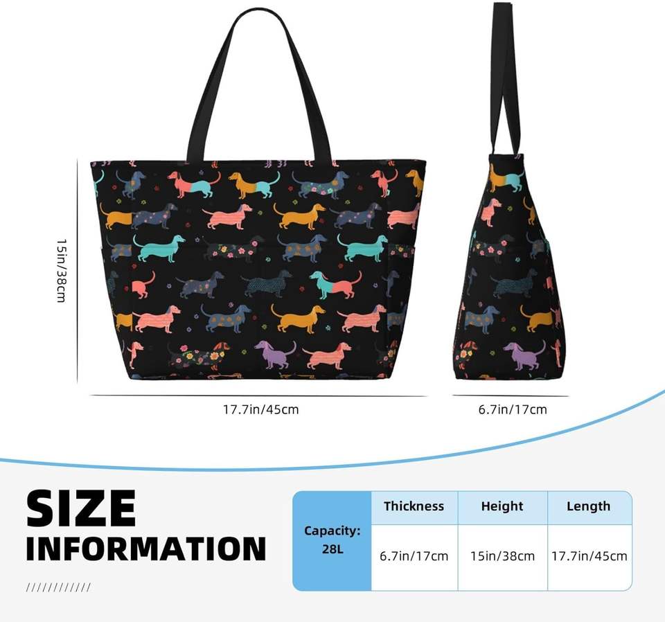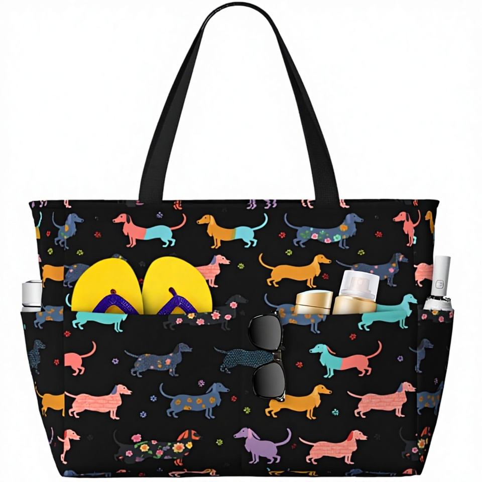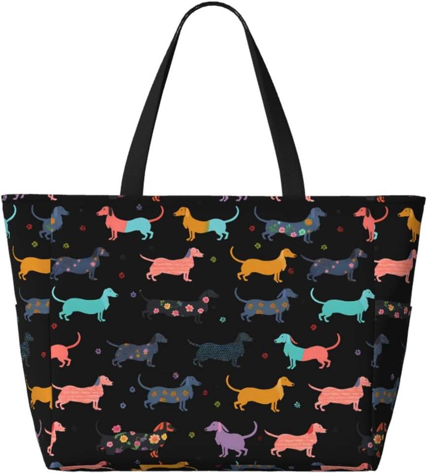 Bolsa de Mano Grande con Estampado de Perro, Estilo Hippie, de Poliéster, con Cierre, para Mujer, para Playa, Piscina, Gimnasio y Viajes, Lavable a Máquina