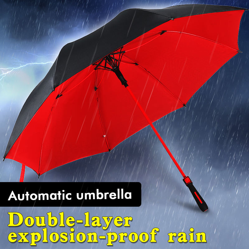Paraguas de golf grande de doble uso Panel de revestimiento negro completamente automático Tela de doble capa semiautomática Regalos de negocios portátiles