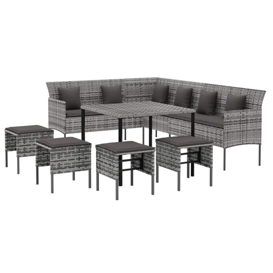Conjunto de Muebles de Jardín de Ratán PE Gris, Grande y Resistente, para Patio