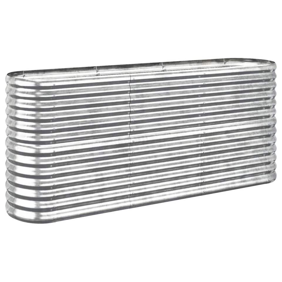 Macetas y jardineras elevadas de acero plateado con recubrimiento en polvo, grandes y duraderas