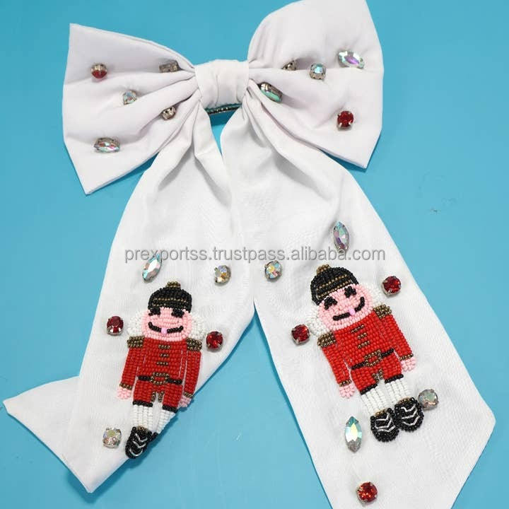 Gran bordado con cuentas Cheer tela lazo para el pelo niñas satén tamaño personalizado invierno fiesta baile recital boda vacaciones