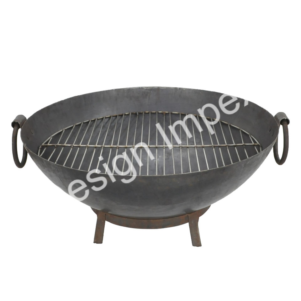 Cuenco grande para fogata con soporte, hoja rústica acabada, cocina de hierro, cuenco Kadai grande, cocina de jardín, pozo de fuego Kadai, gran oferta