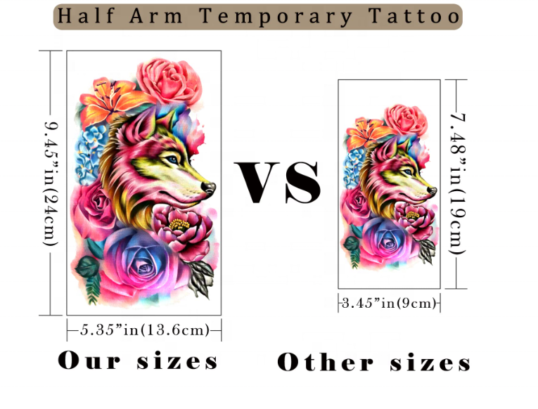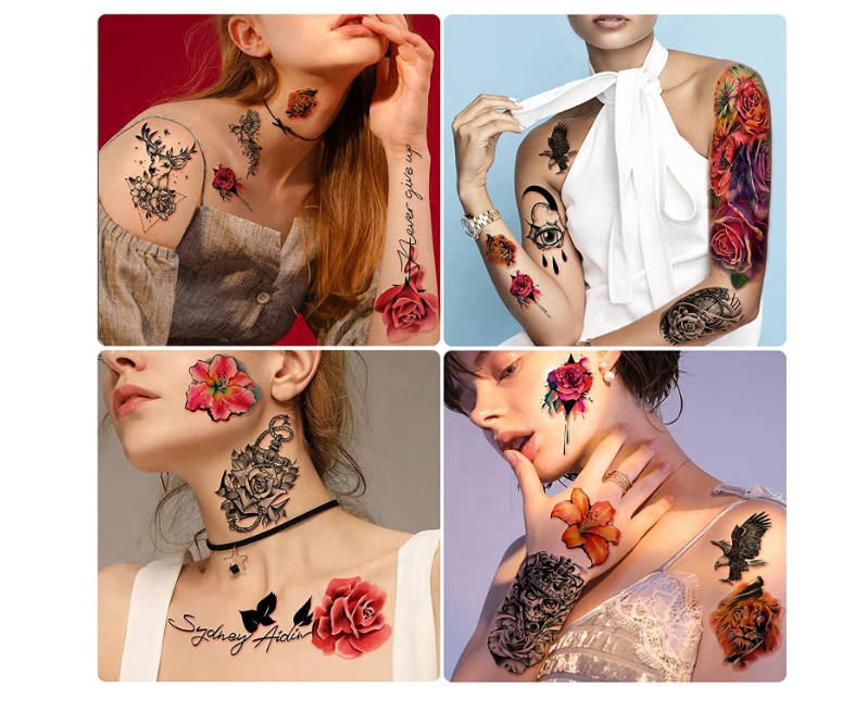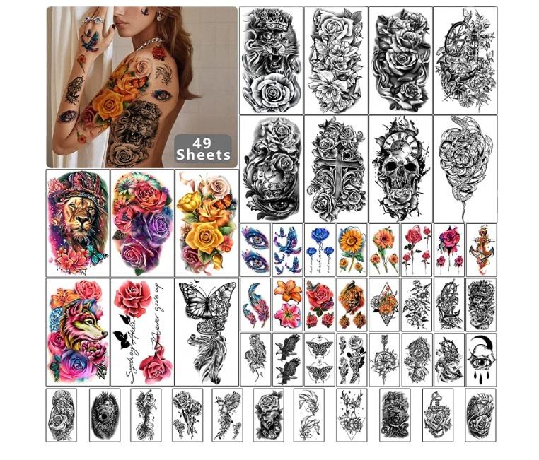 Tatuajes Temporales Impermeables de Calavera de Flores Grandes para Mujeres y Niñas Tatuaje Temporal Realista de Tigre, Lobo y Pájaro