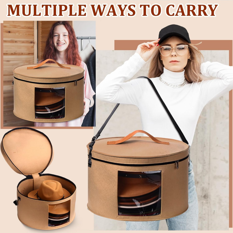 Caja de almacenamiento de sombrero de fieltro plegable grande de 17X10 pulgadas con tapa, armario, funda para sombrero de vaquero, caja organizadora de sombreros, contenedor de almacenamiento de ropa para el hogar