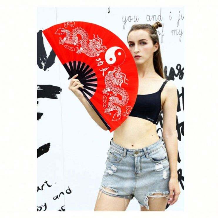 Abanico Plegable Grande de Tela de Nailon para Kung Fu y Tai Chi Chino, Abanico de Mano Personalizado de Bambú Grande con Sonido