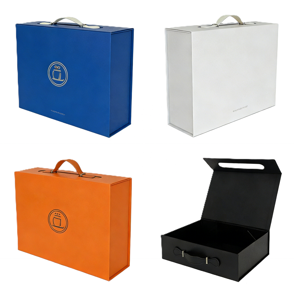 Caja de Regalo Magnética Rígida Plegable Grande, Caja de Cartón Plegable Personalizada, Embalaje de Lujo Negro con Asa, Recubrimiento UV para Calcetines