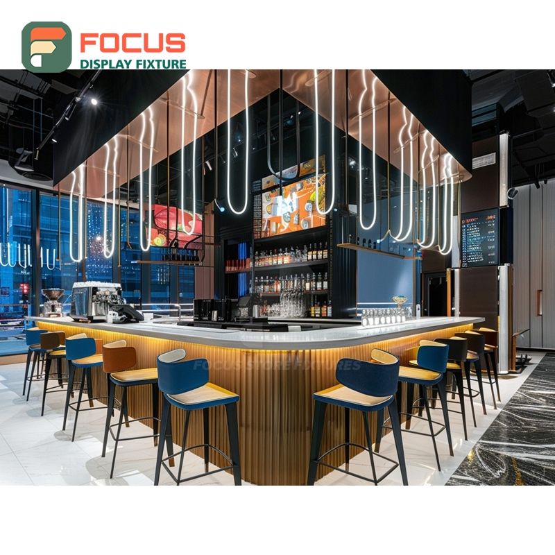 Vitrina de Café de Gran Formato con Acabado en Roble Natural, Área de Estantes para Condimentos, Mueble para Mercancía de Cafetería