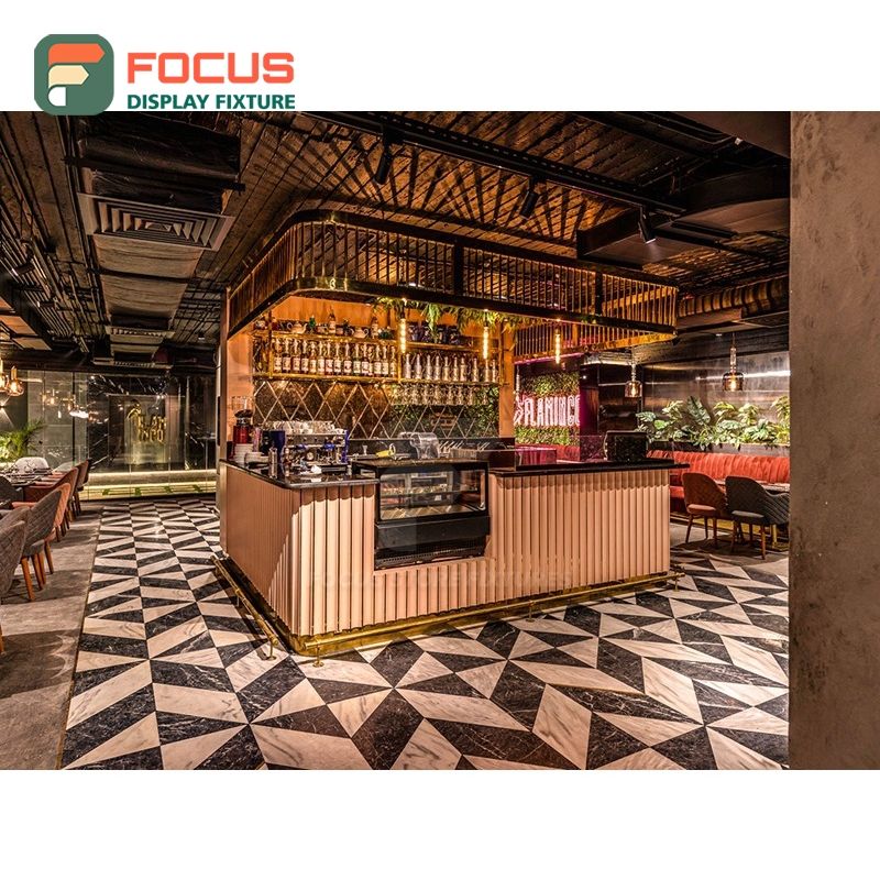 Vitrina de Café de Gran Formato con Acabado en Madera, Estante para Exhibición de Mercancía, Mueble Comercial para Cafetería
