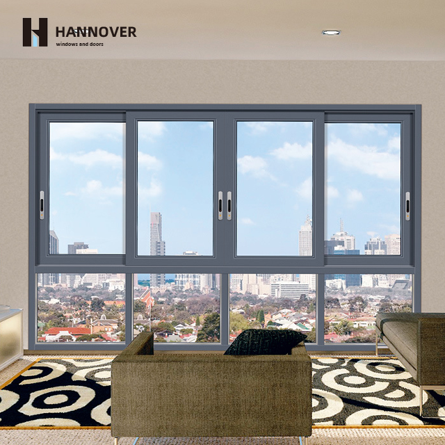 Ventana Corredera Horizontal de Cuatro Paneles de Aleación de Aluminio, con Mosquitera, Rotura de Puente Térmico, Vidrio Aislante, Insonorizada, Energy Star