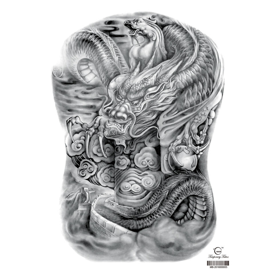Tatuaje Temporal Grande que Cubre Todo el Espalda, Pegatinas de Tatuajes Falsos Realistas para Adultos, Mujeres y Hombres, Diseño de Dragón y Tigre Aterrador