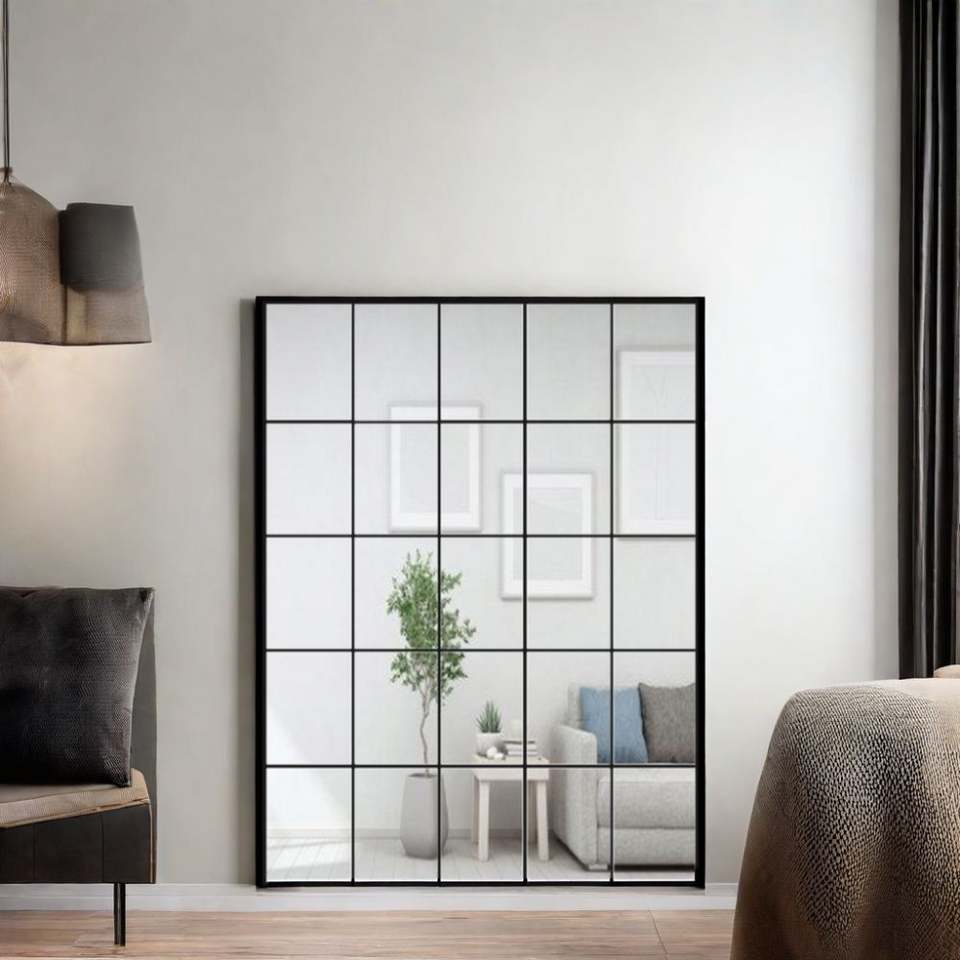 Espejo de Pared Grande de Cuerpo Entero con Marco de Hierro, Color Negro, Diseño Elegante para Decoración del Hogar