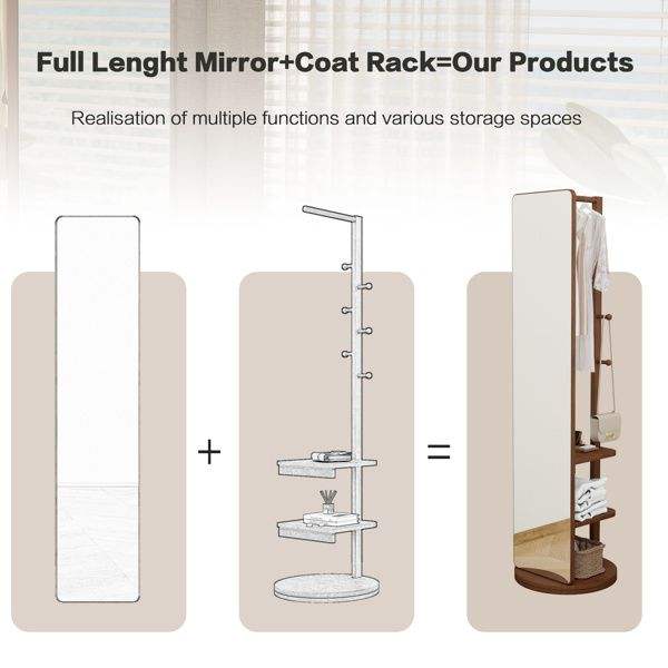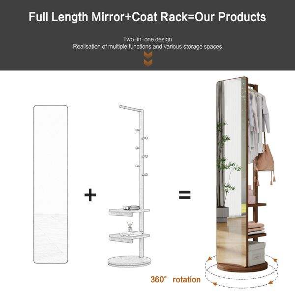 Espejo de cuerpo entero grande de 65.7*17.7 pulgadas de madera maciza + madera de caucho + vidrio para visualización de todo el cuerpo - Percheros