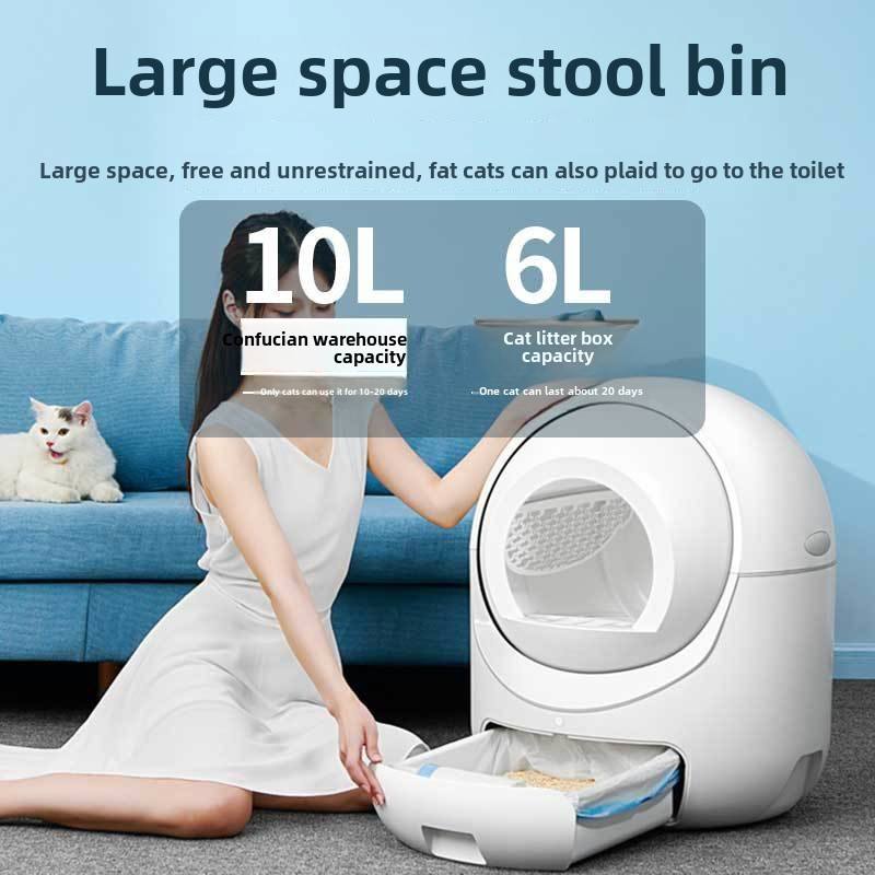 Caja de arena para gatos, Cajón Grande completamente cerrado, inodoro inteligente, pedal antisalpicaduras automático, desodorante, arena, plástico PP