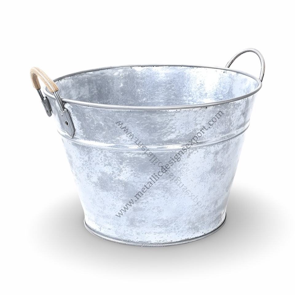 Maceta Grande de Acero Galvanizado con Asas de Madera, Maceta Ecológica para Hogar y Jardín, para Eventos y Uso en Exteriores