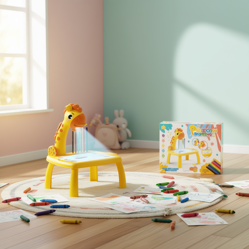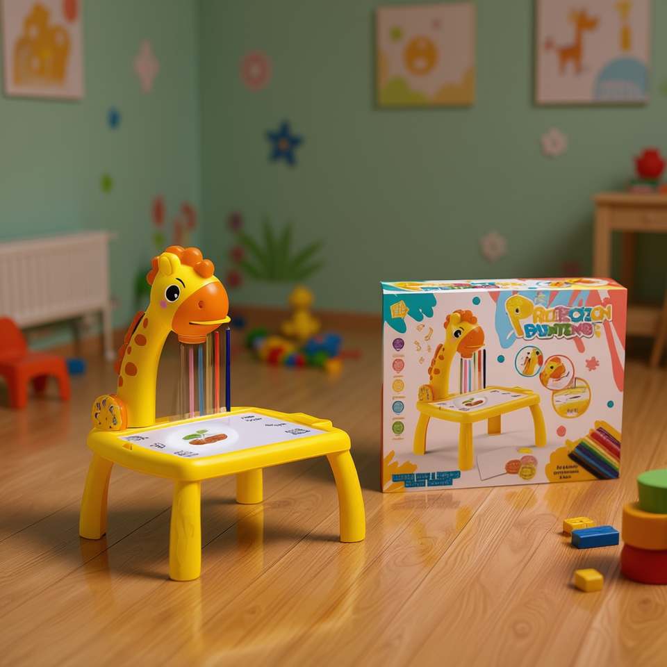 Mesa de Dibujo Jirafa de 13 Pulgadas, Juego Educativo de Arte de Plástico para Niños con Rotuladores de Colores y Libro de Actividades
